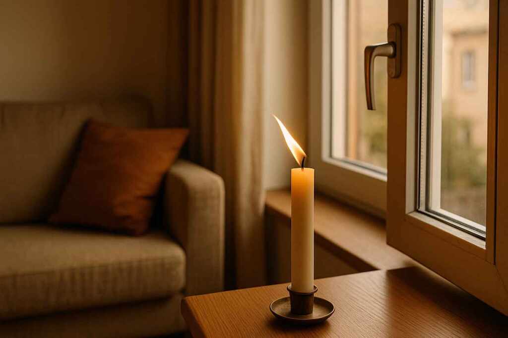 To detect it, you don’t need an expensive tool: the candle test is a simple trick that can reveal where your home is “breathing” too much. Just light a candle and slowly pass it along the edges of windows, doors, or roller shutter boxes. If the flame bends or flickers, it means air is passing through there.