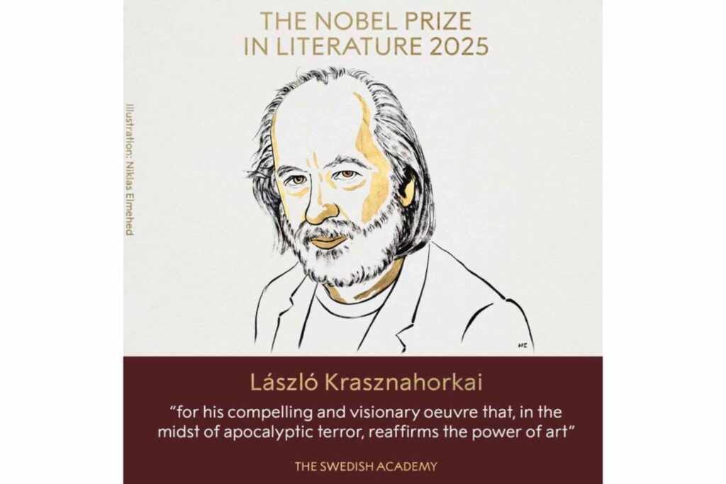 The 2025 #NobelPrize in Literature is awarded to the Hungarian author László Krasznahorkai “for his compelling and visionary oeuvre that, in the midst of apocalyptic terror, reaffirms the power of art.” pic.twitter.com/vVaW1zkWPS— The Nobel Prize (@NobelPrize) October 9, 2025