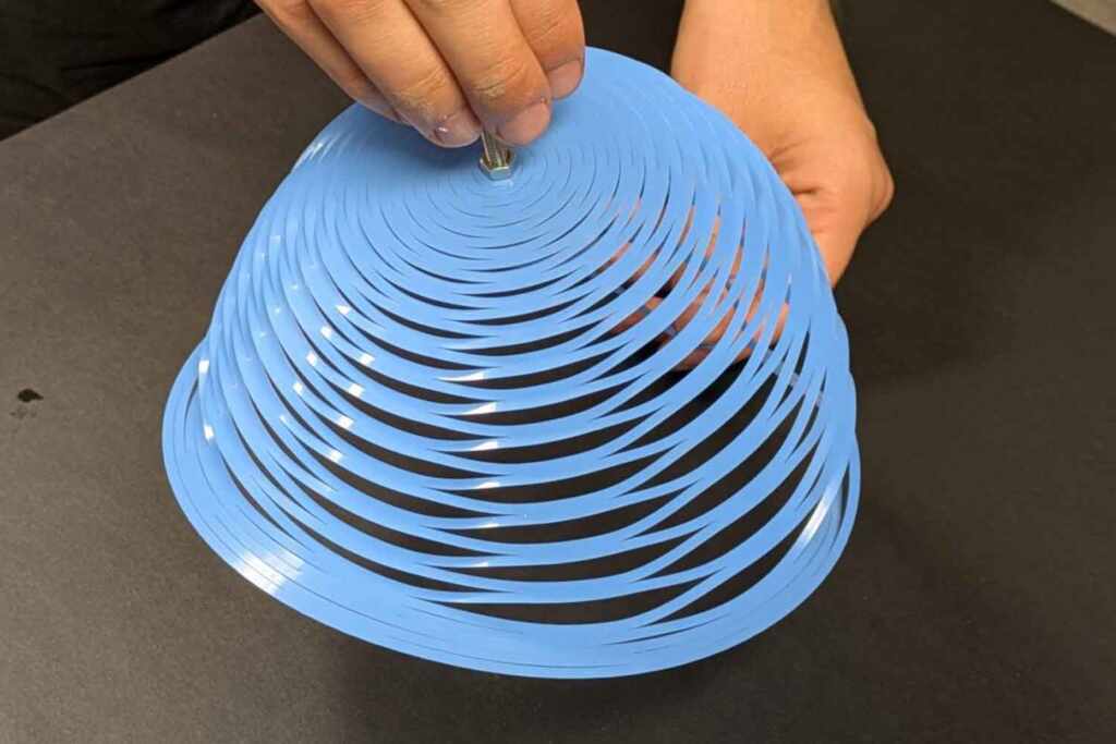 The results were eye-opening. Discs with no cuts, or too many concentric cuts, wobbled unpredictably. But the disc with a clean, simple kirigami pattern reshaped itself into a bell-like form and fell straight down with remarkable stability. As co-author David Mélançon explained: